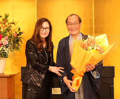 来賓祝辞では、山内修一京都府副知事、桂川孝裕亀岡市長、ニ之湯智参議院議員、木村 やよい総務大臣政務官・衆議院議員、田中英之衆議院議員、安藤ひろし衆議院議員、繁本護衆議院議員、山本恵一京都市会議長、二之湯真士京都府議会副議長から頂きました。
