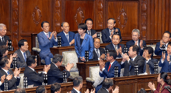 自由民主党では、石破茂総裁の後継を選ぶ総裁選が10月4日に投開票で行われ、国会議員票と党員・党友票の計590票で争われました。第1回目の投票で、高市氏が最多の183票、小泉進次郎氏が164票、林芳正氏は134票、小林鷹之氏は59票、茂木敏充氏は49票となり、過半数を得た候補者がいなかったため、高市氏と小泉氏による決選投票が行なわれ、高市氏が185票、小泉氏が156票となり、高市氏が新総裁に選ばれました。結党70年を迎える同党で、女性の総裁は初となり、10月21日に召集された臨時国会において、第104代内閣総理大臣に選出され、憲政史上初の女性内閣総理大臣が誕生しました。