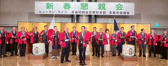 鏡開きのあと、自由民主党京都府支部連合会副会長の橋村芳和京都市会議員団々長の発声で乾杯がおこなわれました。