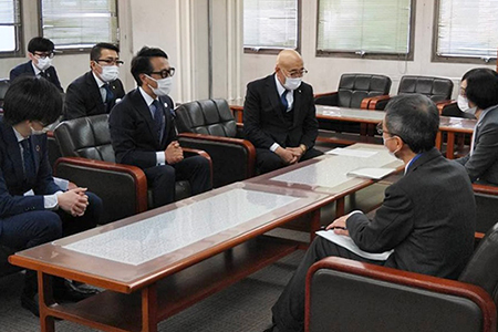 懇談には、山口議長はじめ、浅田大介事務局長のほか、市協最高顧問の上田藤兵衛府本部会長にも出席頂き、「新型コロナウイルス感染拡大」防止を踏まえて、人数・時間制限をおこないながらの懇談となりました。